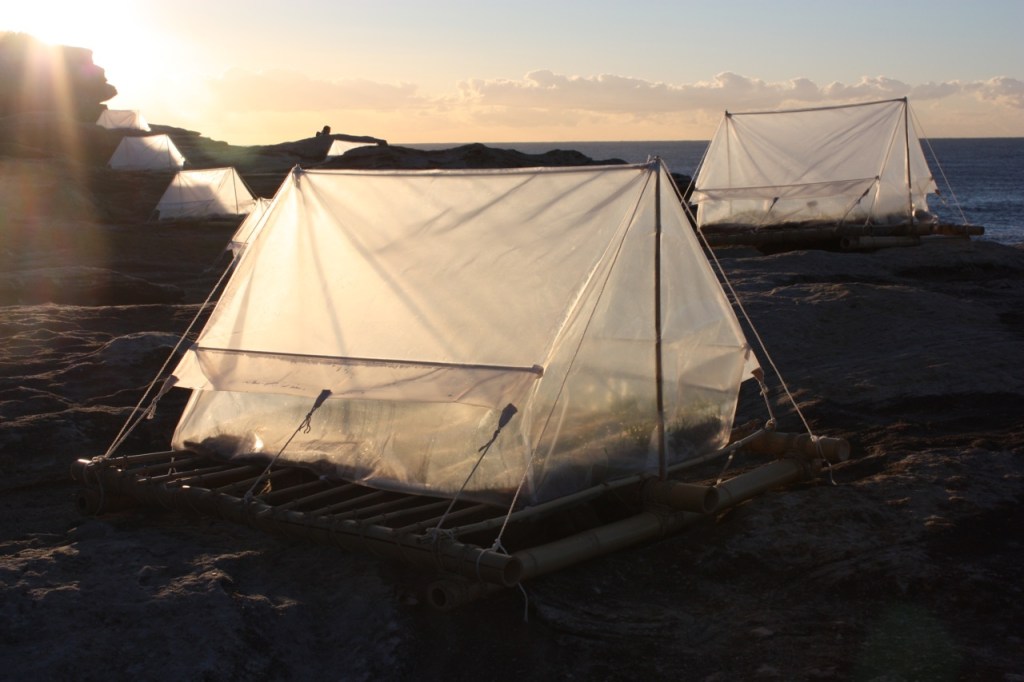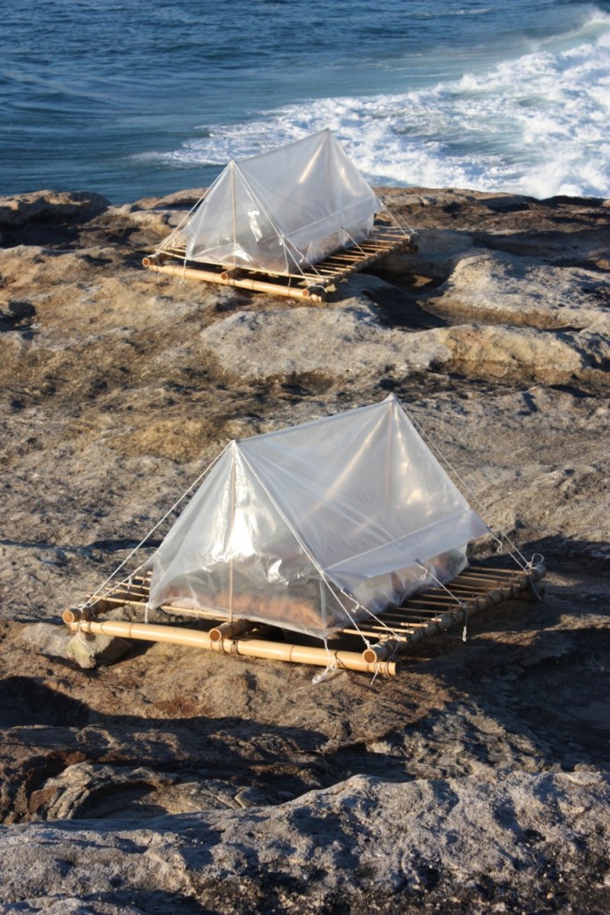 This is a commemorative work, ‘lest we forget’ inviting the viewer to participate and engage with the escalating world issue of community displacement and global survivors, whether caused by catastrophic climatic events, social and religious conflict or economic collapse. This work is informed by issues relating to the adaption of humanity to a new society of nomadic communities forced from their homes to relocate and survive a life of insecurity, vulnerability and an endless search for home.